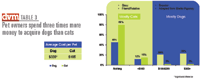 Table 3: Pet owners spend three times more money to acquire dogs than cats