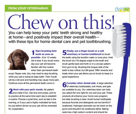 For those patients that need it and for those special clients who will do it-especially starting with their pets as puppies and kittens-this is the client handout that explains the many ways to encourage cat and dog toothbrushing and keep it going through the years.