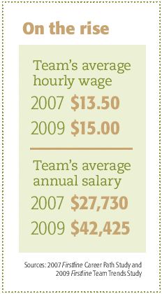 While this news isn't great, there's a bright spot when it comes to team member earnings. Average hourly wages and salaries have increased since 2007. Benefits are on the upswing too. When we compared this year's study results to the 2007 numbers, the percentage of team members receiving the perks listed in the chart below increased for every item with the exception of retirement savings plans and health, life, and disability insurance.