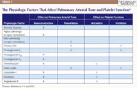 Table 1: The Physiologic Factors That Affect Pulmonary Arterial Tone and Platelet Function*