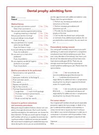 Promoting dental health starts with your team. So develop a team approach to educating clients?and use tools such as this dental prophy admitting form to help you deliver great care.