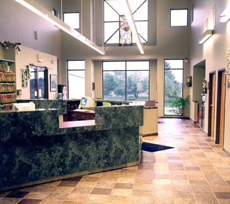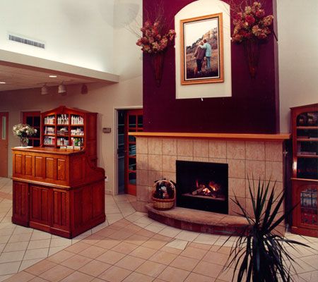 One example of a client-focused facility from the '90s is Animal Hospital of Howard (shown above) in Green Bay, Wis., complete with glass-fronted hall that let clients see into the medical areas of the hospital. Another was Polo Springs Veterinary Hospital (shown below) in Colorado Springs, Colo.-it featured a fireplace, greeter's desk and an upscale retail area.