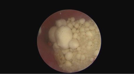 Figure 1: Uroliths at the trigone of the bladder as observed using endoscopy.