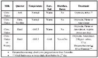 a) Take temperature – no treatment unless >103 in winter and 103.5 in summer