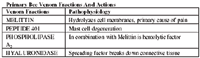 The major venom fractions consist of peptides, proteins and enzymes. The main peptides/proteins are peptide 401, apamin and melittin. The primary enzymes are phospholipase A2 and hyaluronidase.