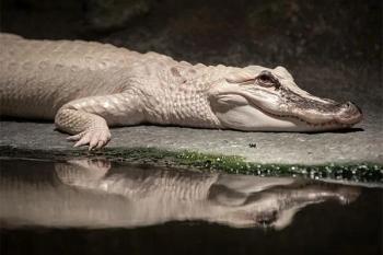 The veterinary team at LSU performed the first alligator cataract surgery on this leucistic alligator