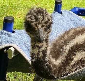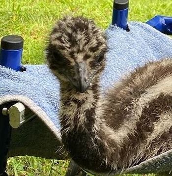 2-month-old rescue emu found in poor condition is on the move again with new device