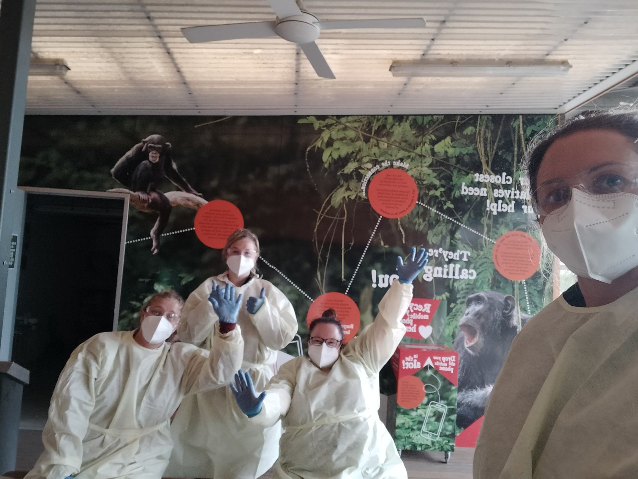 Animal care staff closely monitors and treats infant as these first few weeks are key to success of the birth