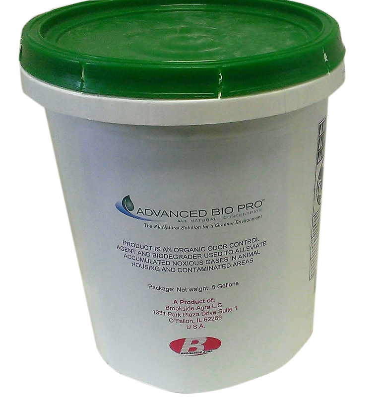 Advanced Bio Pro is a natural proprietary liquid blend of stable, highly active microbial cultures, enhancers, and nutrients specially chosen to naturally and safely eliminate odors associated with ammonia, amines, hydrogen sulfide, and mercaptans. It has been proven to remove 95% of odors within 3 days; decrease composting time by up to 50%; eliminate fruit fly and mosquito larvae; prevent growth of algae in fountains, ponds and lakes; and eradicate fats, oils and greases. Advanced Bio Pro is ideal for swine and poultry housing, swine pits and lagoons, composting dead animals and manure piles.