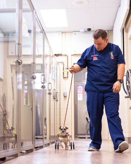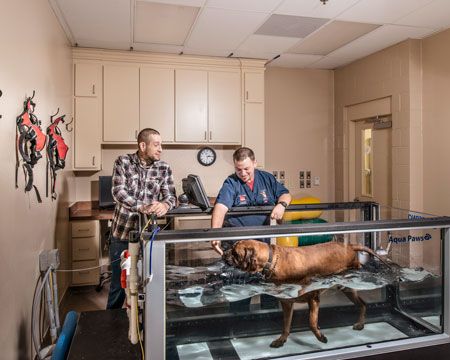 All Pets Animal Hospital added a physical rehabilitation component to the new practice. This area features a separate room with a heated underwater treadmill as well as outdoor exercise yards devoted to rehab work.