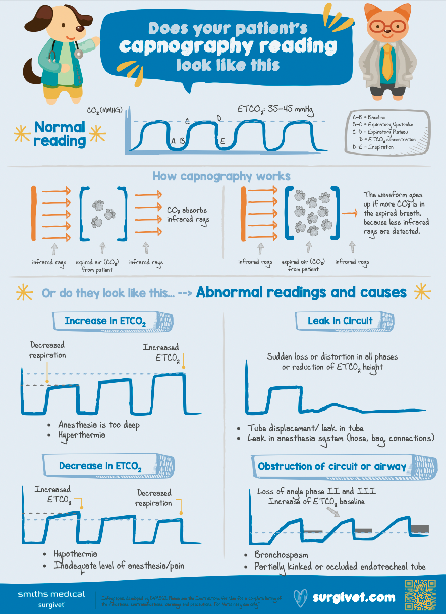 A visual of normal versus abnormal capnography readings, plus what those abnormal results may indicate.