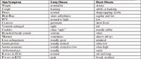 The following chart identifies signs/symptoms that, when combined, help to determine if the dog is ill from heart disease or from lung disease. Any sign/symptom taken by itself may be in error; all or many taken together are usually correct.