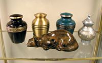 The urns are available in a variety of colors and styles. Urn sizes range from pocket pet to large dog.