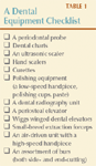 Properly equipping your practice for dentistry is now the accepted standard of care. In this article, we list the equipment you need to perform periodontal prophylaxis and dental extraction (Table 1). This list is not intended to recommend or endorse any particular brand or manufacturer—for specific recommendations, contact your colleagues who have already purchased equipment, or contact a diplomate of the American Veterinary Dental College.