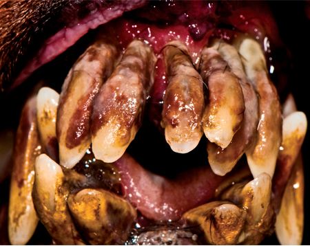 Removing plaque and calculus through professional dental cleaning (supragingival and subgingival) and polishing the teeth with power/hand instrumentation while the patient is anesthetized removes the biofilm, allowing gingivitis to resolve (Photo 3). Oral hygiene home care prevents recurrence.