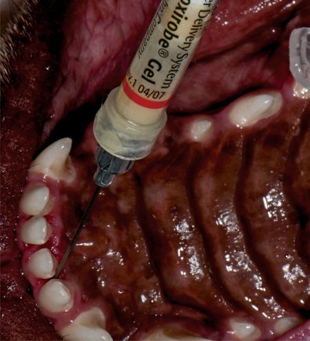 Photo 6: Local antibiotic administration of doxycycline gel (Doxirobe—Pfizer).