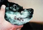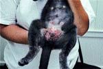 The diagnosis of dust mite allergy is achieved by first determining that the patient is atopic by obtaining a good history i.e. age of onset 6 months to 3 years old, predisposed breed, facial/foot involvement, recurrent otitis/pyoderma, no response to food elimination trial and ruling out ectoparasite infestations. In cats, the symptoms can vary from eosinophilic granuloma complex lesions to miliary dermatitis to excessive grooming to chin acne or a waxy otitis (Photo 3). With dust mite allergy, patients are usually nonseasonal with possibly a flareup during the end of summer/fall particularly here in the Midwest. There is usually a positive response to steroids but since the allergy is nonseasonal, year round steroids are a dangerous way to treat. Once it has been determined that the patient is atopic, the next step is skin or blood testing to confirm the dust mite allergy.