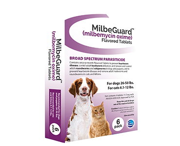 MilbeGuard (milbemycin oxime) Flavored Tablets are an FDA-approved generic form of milbemycin oxime. MilbeGuard is a monthly beef-flavored tablet that prevents heartworm disease and treats and controls whipworms (in dogs only), hookworms and roundworms.