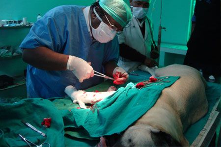 Dr. Srinivasan Ramanathan is shown doing what he loves most-surgery. Here he's performing a tumor removal on a police officer's Labrador retriever.