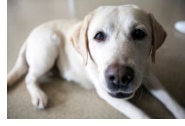 The staff initially evaluated Mica, a nine-year-old Labrador retriever (shown at right; photos by Maria B. Farias), in February for progressively worsening osteoarthritis. The working dog had sustained an injury as a puppy, and while initially she managed well with medication, her condition had deteriorated during the last year and a half. Both her anterior and posterior cruciate ligaments were severely damaged and the cartilage in her knee almost completely worn away. At that stage, the only treatment alternative was total knee replacement.