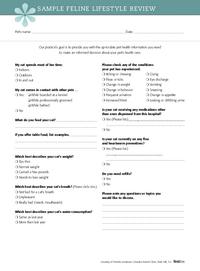 Use a feline lifestyle review form to tailor your recommendations for cat owners.