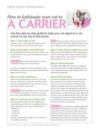 Use this step-by-step guide to educate cat owners about how to help their cats adjust to a cat carrier for trips to the veterinarian.