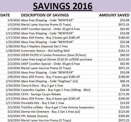 Examples of savings with loyalty programs and promotional deals with veterinary manufacturers, distributors and sales reps.