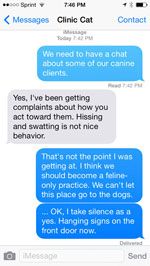 If your clinic cat could text you what would she say? CC the Clinic Cat is here with some cat-titude and mischief to keep you on your toes.