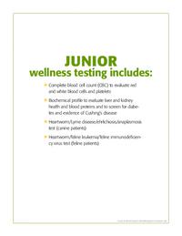 These junior and senior wellness testing flyers promote your services to pet owners.