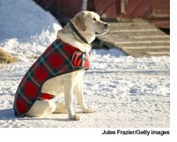 > Dogs and cats should be kept inside if possible. If dogs are kept outside, they should have a draft-free shelter large enough to stand and turn around in, yet small enough to retain body heat. Use a layer of straw or other bedding material to help insulate pets against the cold.