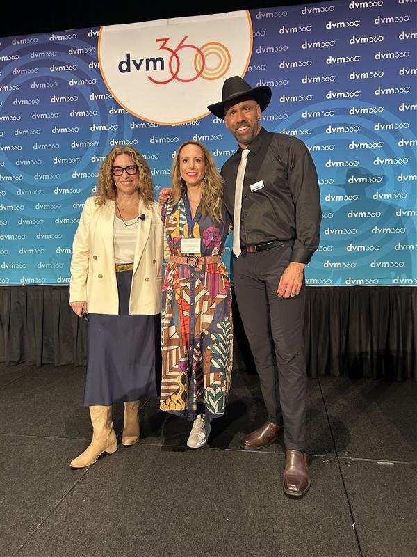 (From left to right) Natalie Marks, DVM, CVJ, CCFP, Elite FFCP-V, Ashley Pochick, head of national accounts for Embark, and Adam Christman, DVM, MBA, on stage during the Fetch Nashville conference. (Image courtesy of Adam Christman, DVM, MBA)