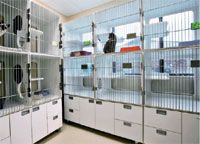 The cat's meow: When team members show clients the new hospital, they always take them by the cat boarding area. The glass-back cat condos with views to the outside make kitties feel right at home-and clients love it. Dr. Kendrick says feline boarding is full almost all the time.