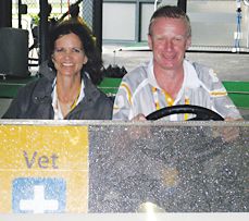 Sharon J. Spier, DVM, PhD, Dipl. ACVIM, co-leader of the international veterinary team at the equestrian Olympic Games, tours the eventing competition site outside Hong Kong with Gordon Sidlow, BVMS, MRCVS, of the Hong Kong Jockey Club.