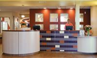 The exterior is Dr. Holfinger's favorite feature of the new facility. This is a a surprise, he says, because the exterior gave the two owners the most trouble—and increased building costs considerably. Both the city and the developers of the surrounding urban village set forth strict regulations about building exteriors. The developers were most concerned with the street frontages inside the development, forcing them to move the building closer to two streets, creating a continuous street frontage facing the development. This forced parking and the "front" facade to the back of the site, facing the main highway. In short, the owners were required to essentially have four front facades to appease all of the requirements.