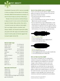 An estimated 45 percent of all U.S. pets are obese, according to the Association for Pet Obesity Prevention. Teach your clients about their pets' ideal weight with this obesity handout.