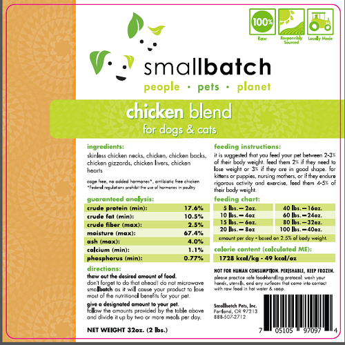 Two lots of Smallbatch Pets Chicken Blend for Dogs & Cats have been recalled due to potential contamination with Salmonella.