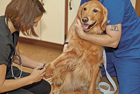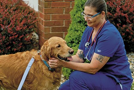 Truman with credentialed veterinary technician Lisa Schelinski.