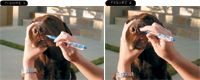 The trigeminal nerve, or fifth cranial nerve, is divided into a motor part and a sensory part. The motor part (mandibular branch) innervates the masticatory muscles and is evaluated by palpating the temporal and masseter muscles on both sides and by assessing the patient's ability to close its mouth. The sensory part is evaluated by assessing the palpebral reflex and the nasal sensation reaction. For the palpebral reflex, gently touch the medial canthus (ophthalmic branch), lateral canthus (maxillary branch), and base of the ear and the jaw (mandibular branch). The efferent part of the reflex is mediated by the facial nerve and results in eyelid closure. The nasal sensation reaction is tested by touching or poking the upper lip, nasal septum, or both to elicit a reaction from the patient (Figures 3 & 4). In addition to eyelid closure (reflex portion), you should see an aversion reaction (e.g. backward movement of the head, licking of the nose). This reaction requires not only trigeminal sensory function but also good function of the contralateral somesthetic cortex of the brain.