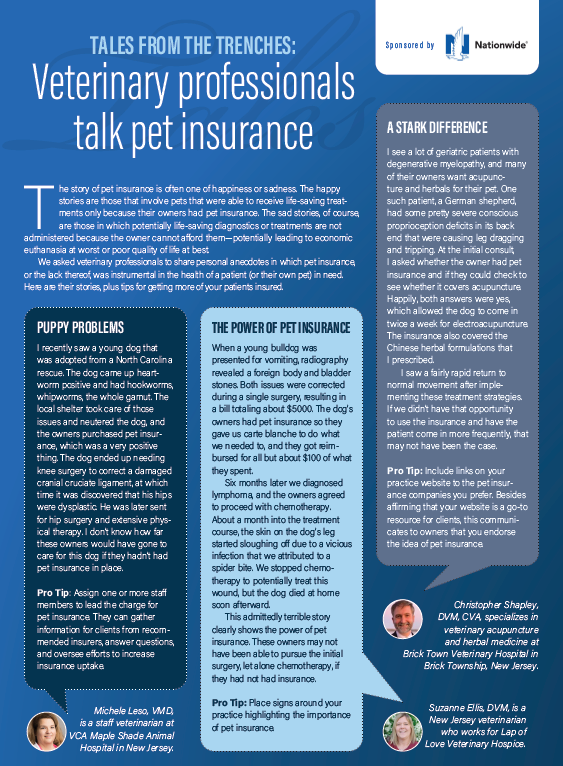 Personal anecdotes often can be one the best ways to impart advice to your veterinary clients. Pet health insurance is a prime example. Sponsored by Nationwide.