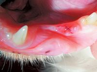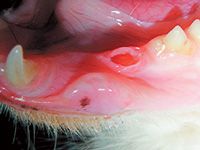 Although causes have not been determined for tooth resorption in general, one study suggests that cats with tooth resorption have significantly higher serum concentrations of 25-hydroxyvitamin D than cats do without tooth resorption.7 These researchers also found that 41 percent of canned cat foods have in excess of 30 times the vitamin D requirements of cats.8 Feeding diets that meet but don't exceed the 250 IU/kg dry weight equivalent may prove to be a key to preventing tooth resorption. It's also generally thought that Type 1 resorption is of inflammatory origin, so good oral hygiene may be key to preventing this form of resorption.