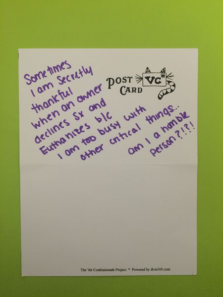 "Sometimes I am secretly thankful when an owner declines surgery and euthanizes because I am too busy with other critical things ... am I horrible person?!?!"