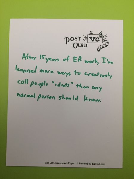 "After 15 years of ER work, I've learned more ways to creatively call people 'idiots' than any normal person should know."