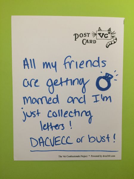 "All my friends are getting married and I'm just collecting letters! DACVECC or bust!"