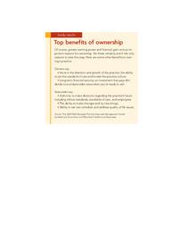 Of course, greater earning power and financial gain rank as important reasons for ownership. Yet there are more reasons to take this step. Here are some other benefits to owning a practice.