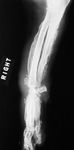 10. A lateral forelimb radiograph of a geriatric dog presented for evaluation of severe lameness and pain. Note the extreme periosteal proliferation consistent with hypertrophic osteopathy. The dog had a primary pulmonary carcinoma. (Photograph courtesy of Dr. Laura Garrett.)