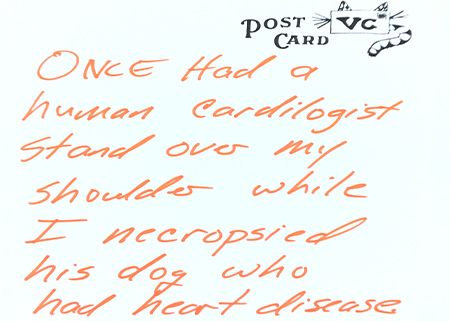 Once I had a human cardiologist stand over my shoulder while I necropsied his dog who had heart disease.