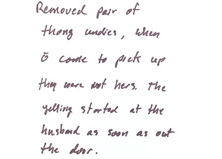 Removed pair of thong undies. When owner came to pick up they were not hers. The yelling at the husband as soon as they were out the door.