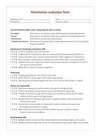 Use this sample veterinarian evaluation form as a launching pad for written employee performance reviews or as a self-evaluation tool.