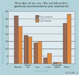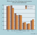 While most pet owners have heard of fleas, ticks, tapeworms, heartworms, and other parasites, many are still not using proper parasite preventive measures. Fleas and ticks are the major parasites of client concern (Figure 2). Fifty-four percent of survey respondents know that fleas and ticks can be found in their houses all year long, but just 29% are concerned about parasites year-round. Of these respondents, 42% have had a problem with fleas and 23% with ticks.
