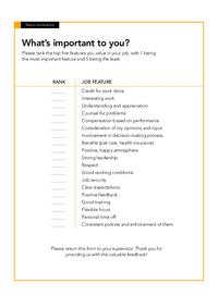 Ask employees to rank the top five features they value in their job with this exclusive form.
